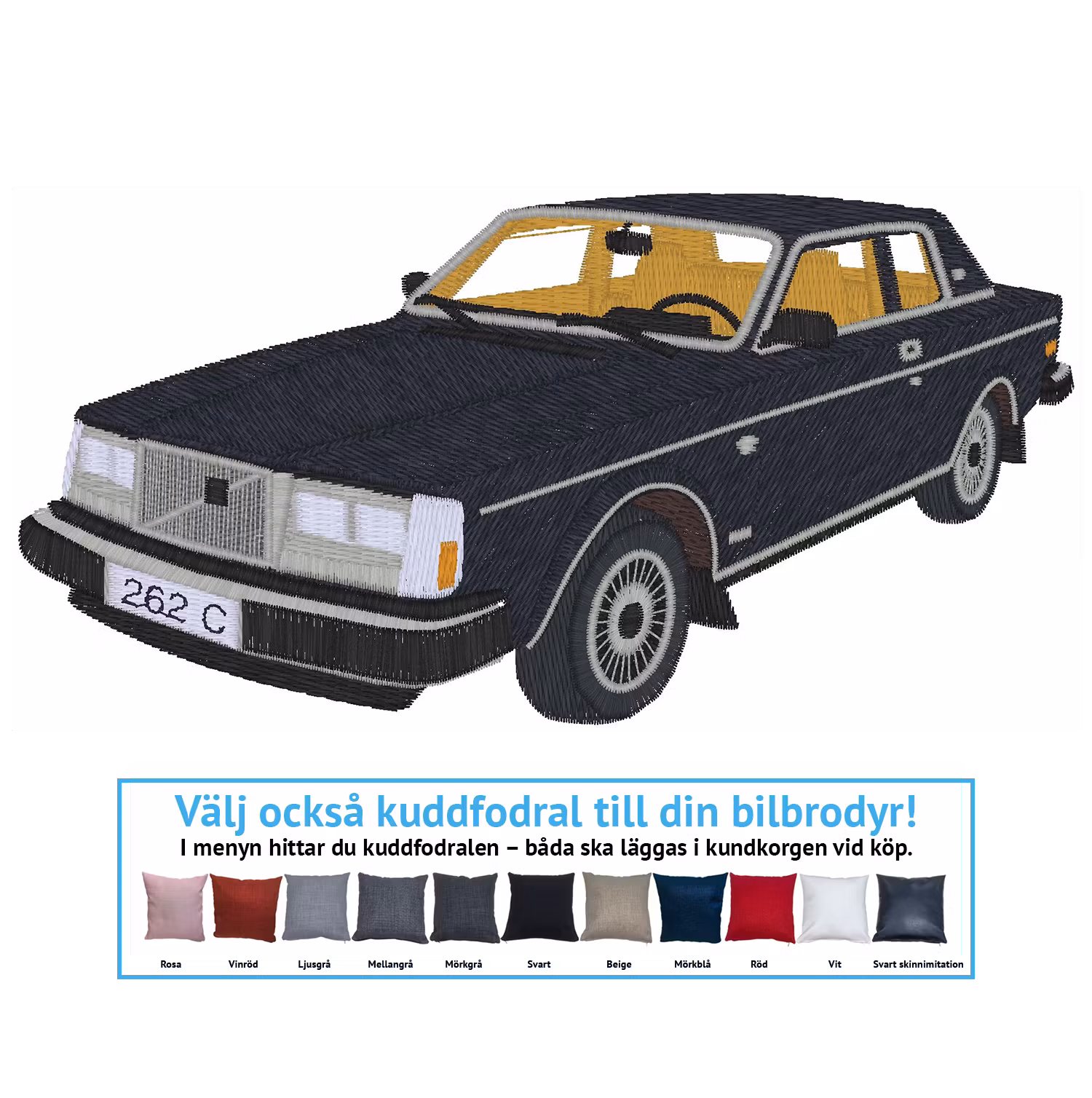 Volvo 262C, 1981 420 kr Maskinbroderad Volvo 262C, 1981. Välj vilket kuddfodral du vill ha brodyren på – du hittar våra kuddfodral i menyn. I lager. Lägg i korgen Artikelnummer: 434 Dela Information Maskinbroderad Volvo 262C, 1981. Välj vilket kuddfodral du vill ha brodyren på – du hittar våra kuddfodral i menyn.