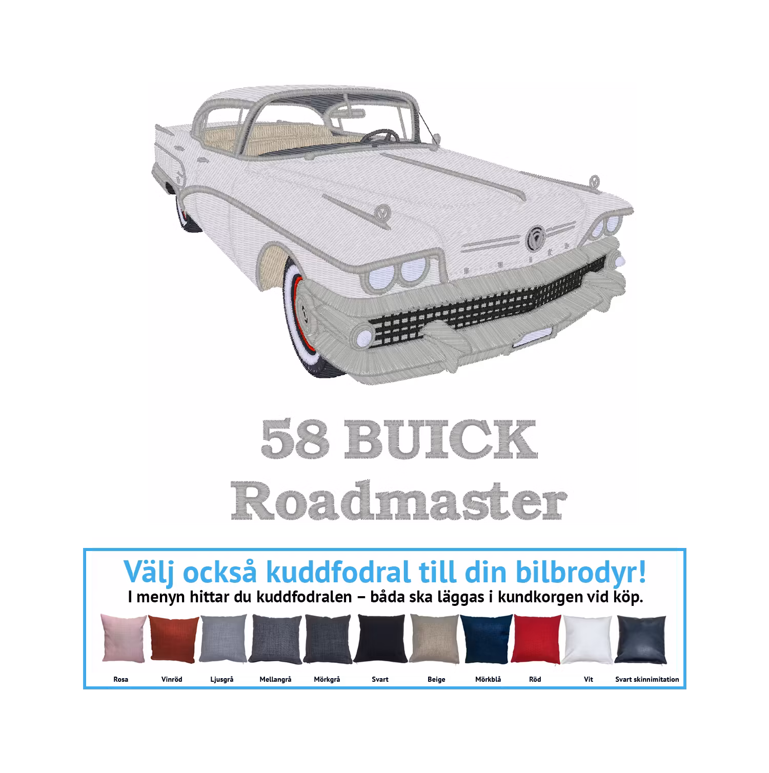 Buick Roadmaster, 1958 420 kr Maskinbroderad Buick Roadmaster, 1958. Välj vilket kuddfodral du vill ha brodyren på – du hittar våra kuddfodral i menyn. I lager. Lägg i korgen Artikelnummer: 728 Dela Information Maskinbroderad Buick Roadmaster, 1958. Välj vilket kuddfodral du vill ha brodyren på – du hittar våra kuddfodral i menyn.