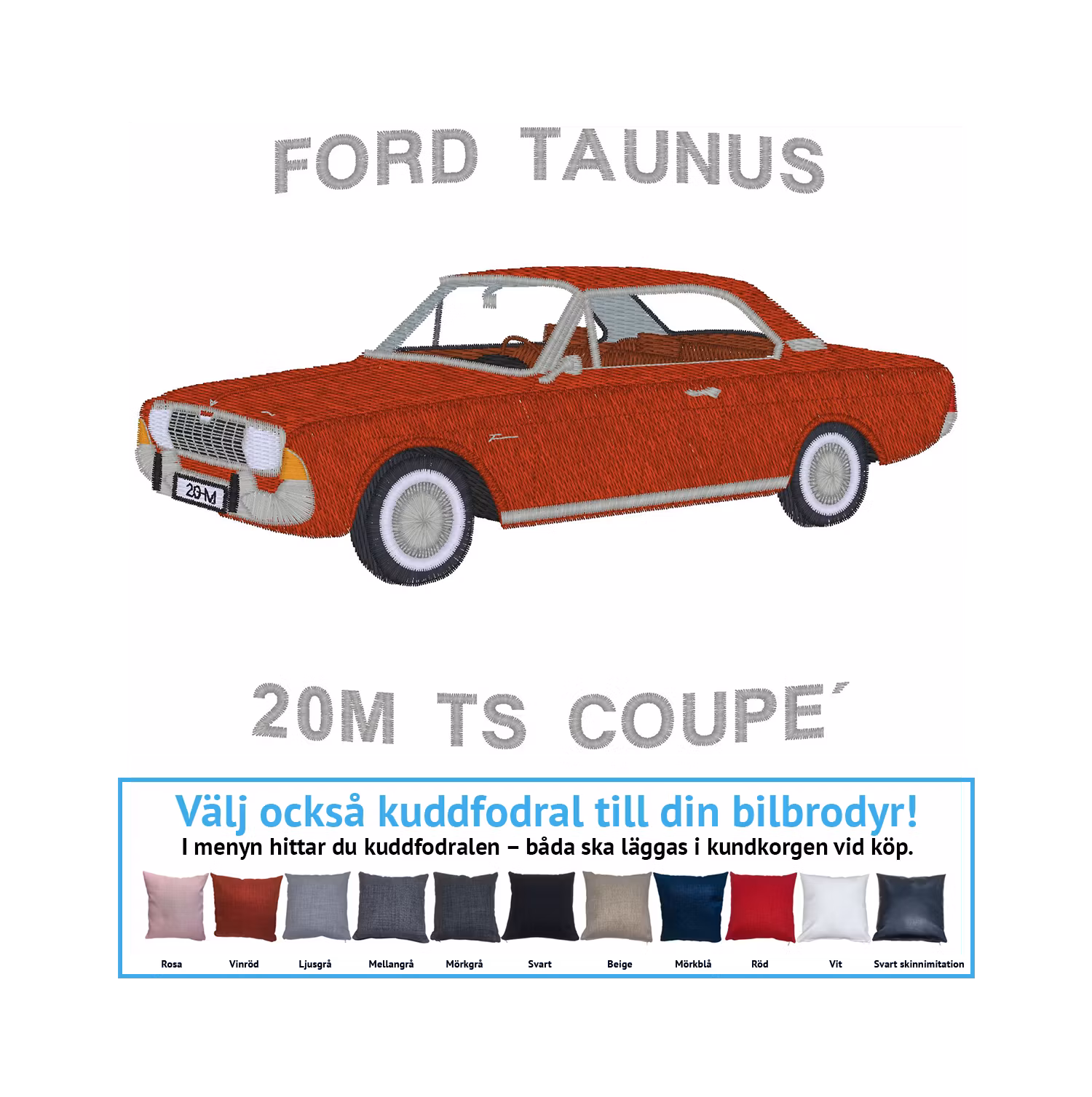 Ford Taunus 20m TS coupe 420 kr Maskinbroderad Ford Taunus 20m TS coupe. Välj vilket kuddfodral du vill ha brodyren på – du hittar våra kuddfodral i menyn. I lager. Lägg i korgen Artikelnummer: 441 Dela Information Maskinbroderad Ford Taunus 20m TS coupe. Välj vilket kuddfodral du vill ha brodyren på – du hittar våra kuddfodral i menyn.