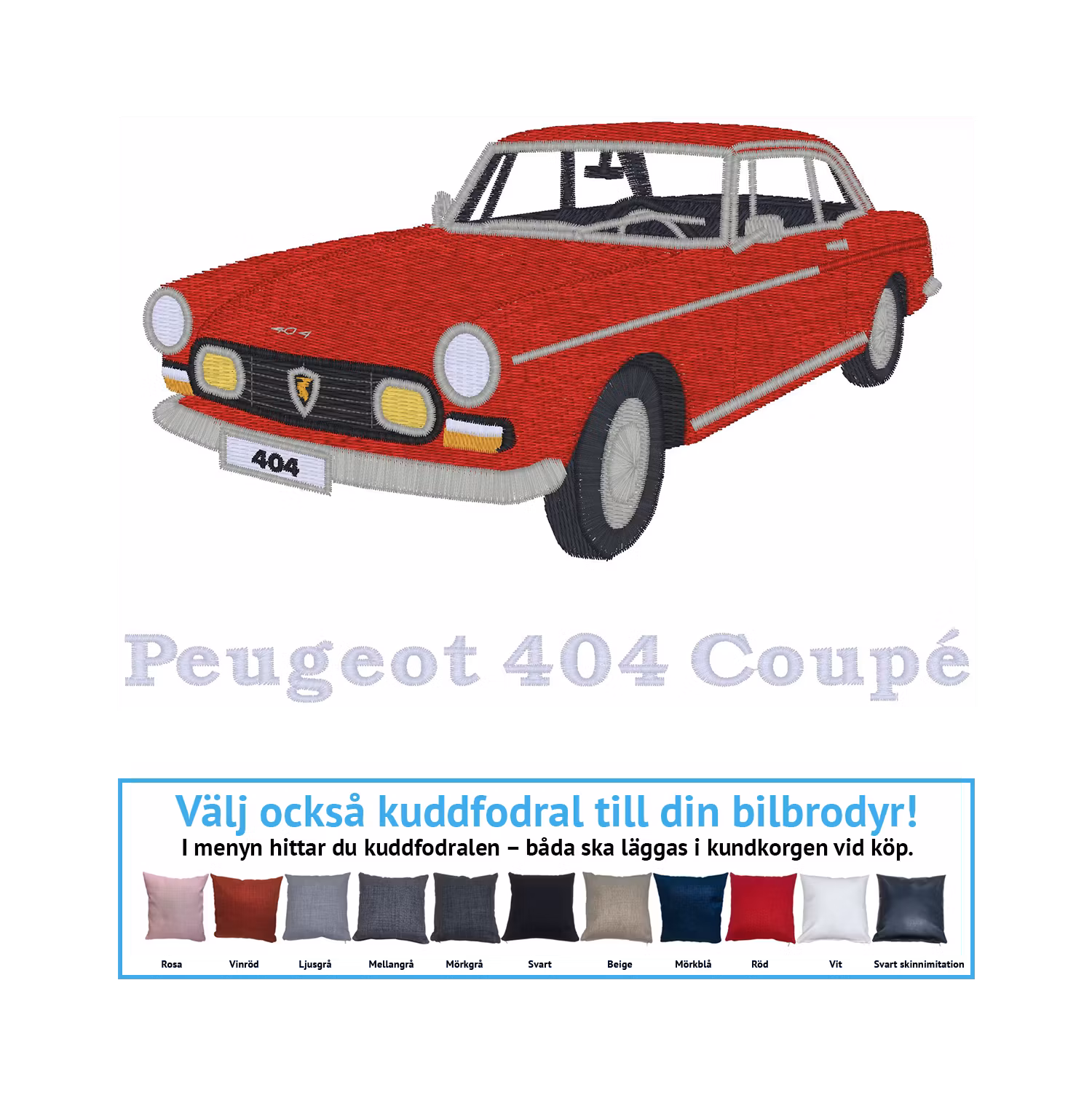 Peugeot 404 coupé, 1968 420 kr Maskinbroderad Peugeot 404 coupé, 1968. Välj vilket kuddfodral du vill ha brodyren på – du hittar våra kuddfodral i menyn. I lager. Lägg i korgen Artikelnummer: 378 Dela Information Maskinbroderad Peugeot 404 coupé, 1968. Välj vilket kuddfodral du vill ha brodyren på – du hittar våra kuddfodral i menyn.